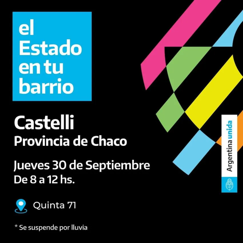 Este jueves 30 de las 8:00 a 12:00 hs en la Quinta 71 se realizará un nuevo operativo del "Estado en tu Barrio".