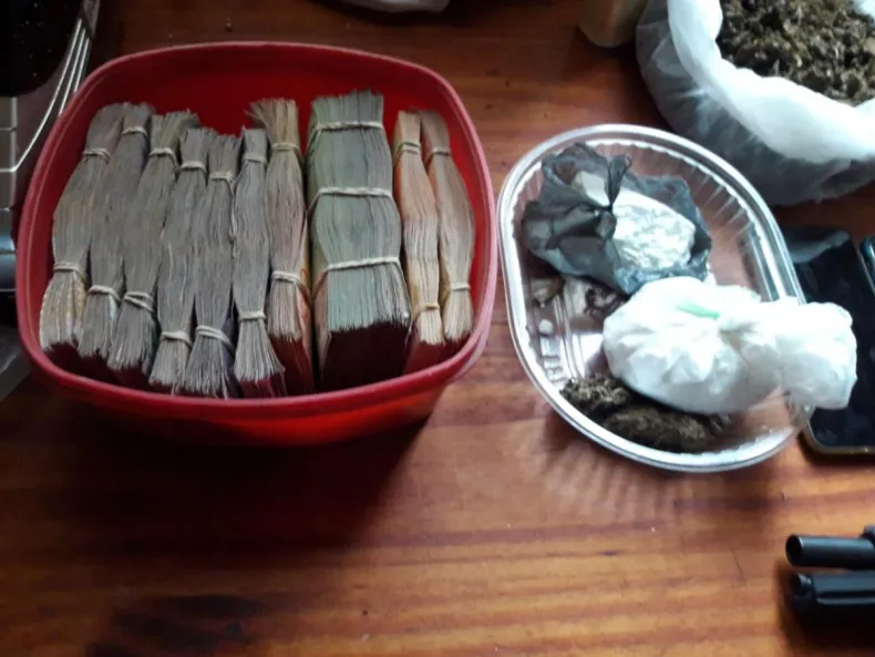 Además, incautaron la suma de $460.670 pesos en efectivo y una máquina contadora de billetes, dichos secuestros deberán ser investigados para determinar su procedencia. Se hallaron también estupefacientes, 238 gramos de cocaína y 2.750 kilogramos de marihuana.