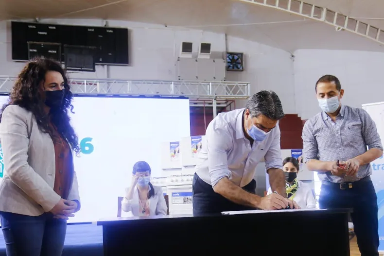 El mandatario firmó un convenio para implementar el programa de Ayudas Urgentes, que beneficiará en una primera etapa a 210 familias de 109 barrios populares de la provincia. Durante el encuentro se hizo una entrega simbólica a los primeros beneficiarios.