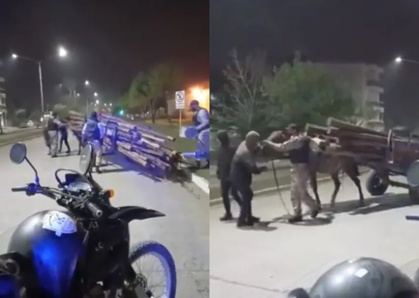 La situación fue alertada por los agentes motorizados que al notar el extraño traslado de postes y el maltrato animal al que era sometida la yegua decidieron intervenir, demorando a los dos jóvenes y secuestrando los postes robados.