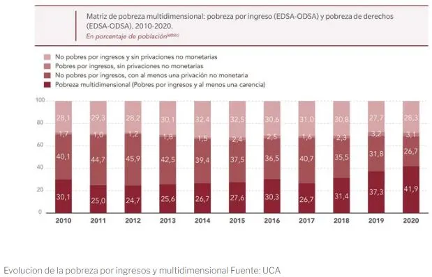 Desde el equipo del Observatorio de la Deuda Social de la UCA Eduardo Donza sostuvo que "el dato va a estar algo por arriba del 40%, porque el mercado de trabajo no se recuperó".