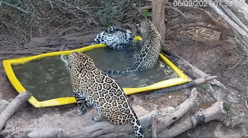 Los Yaguaretés Takajay y Nala se familiarizan con el agua en el impenetrable