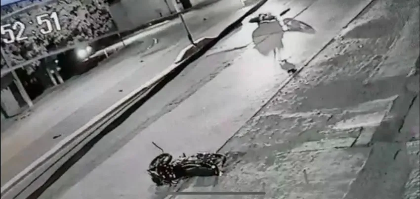 Este sábado, cerca de las 4 de la madrugada, dos motocicletas chocaron en la intersección de Avenida Castelli y calle Tránsito Cocomarola. Según se pudo ver por una cámara de seguridad ambos motociclistas circulaban a alta velocidad.