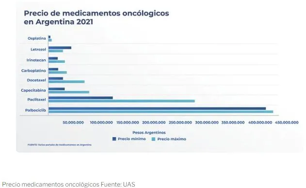 Además, el "aumento de precios de medicamentos de alto costo también supera ampliamente los de otros países: 13 de los 30 medicamentos de alto costo más utilizados superan los 418.000 pesos".