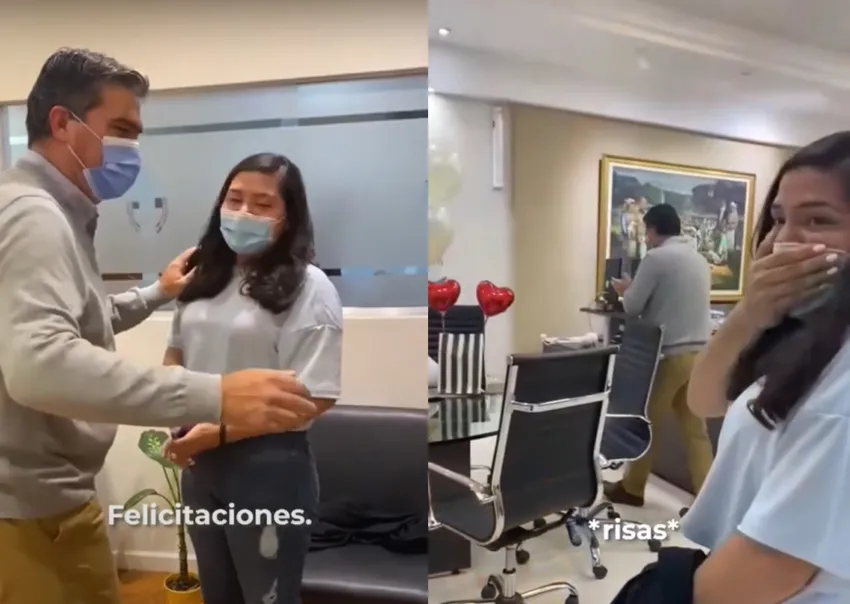 Es por eso que junto a la madre de la joven, una mujer llamada Valeria, y la hermana de la agasajada celebraron el cumpleaños en la oficina. En las imágenes se ve como el gobernador le entrega un regalo y la sorprende con una torta y globos.