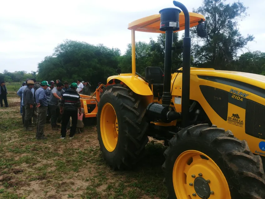 El intendente Pío Sander junto a representantes de la empresa proveedora de las máquinas, técnicos del IAFEP, de la Secretaría de producción y miembros de la comisión del nuevo consorcio de servicios rurales del paraje El Asustado participaron de la regulación y puesta a punto de la rastra de discos y del nuevo Tractor, que fue entregado días atrás por el gobernador Jorge Milton Capitanich, en los festejos del 85° aniversario de Castelli.