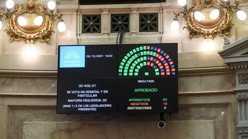 "Con 58 votos afirmativos queda aprobado, por unanimidad, dictamen de los proyectos de declaración que respaldan lo legislado acerca del límite exterior de la plataforma continental e insular argentina y rechazan la pretensión del gobierno chileno de extender la suya", precisó el Senado a través de Twitter al respecto.