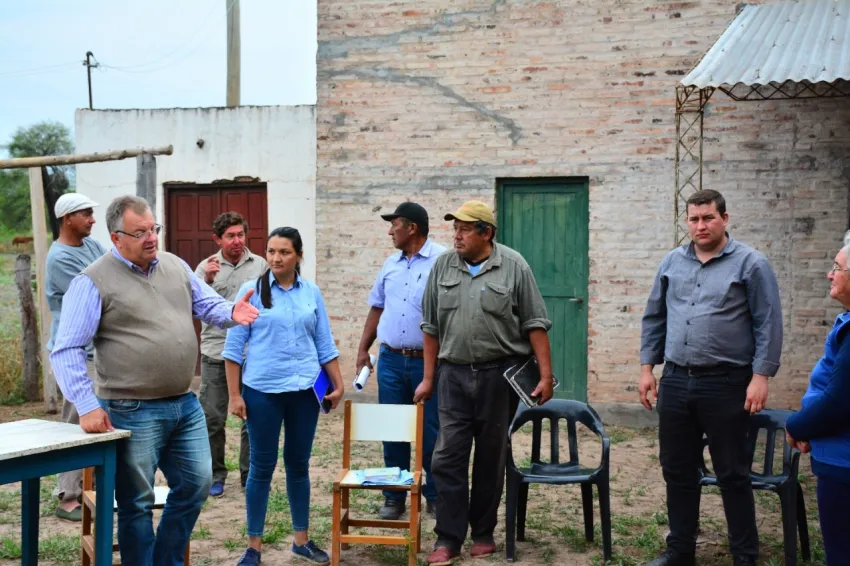 El Intendente Pio Sander acompañado de la secretaría de Producción y Desarrollo Local, Jessica Kloster, el subsecretario de pequeños y medianos productores, Elio Borosky y el médico Veterinario, Dante González hicieron entrega de semillas para la siembra de cementera baja y forraje a miembros de la Organización de Pequeños Productores de Pampa Almirón.
