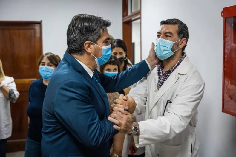 "Estamos llevando adelante un proceso de refacción integral con la correspondiente incorporación deequipamientos en todas las pastillas del Hospital Perrando", remarcó el mandatario, celebrando estas nuevas refacciones para mejorar la atención ciudadana, y acompañado por la directora del Hospital, Nancy Trejo y el codirector Daniel Pascual.