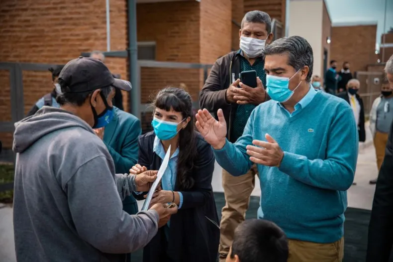 "Hoy no se trata solo de entregar viviendas, sino de seguir ampliando derechos, de llevar adelante una reparación histórica para las comunidades originarias", aseguró el mandatario acompañado también por el presidente del Instituto Provincial de Desarrollo Urbano y Vivienda (Ipduv) Diego Arévalo.