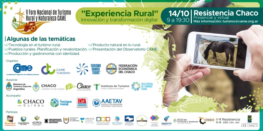 El foro denominado "Experiencia Rural. Innovación y transformación digital" es organizado por la Confederación Argentina de la Mediana Empresa (CAME) y la Federación Económica del Chaco (FECHACO), con el acompañamiento de otras instituciones nacionales y locales.