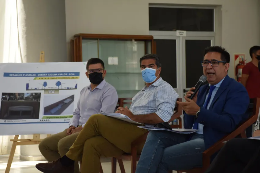 El secretario de Planificación, Infraestructura y Ambiente, Guillermo Monzón, indicó que "estas son obras de conductos pluviales de la cuenca de la Laguna Avalos que se van a ejecutar sobre las avenidas Hernandarias, Avalos, Wilde, Belgrano y 25 de Mayo que son arterias que se inundan constantemente", y añadió que "cuando uno ocupa un lugar de gestión tiene que pensar políticas públicas para la ciudad de acá a 20 años".