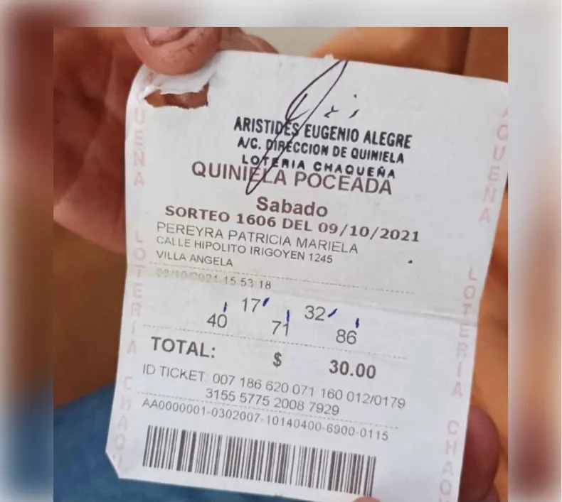 El hombre realizó la jugada en la subagencia 302/07 de Patricia Pereyra, ubicada sobre Hipólito Yrigoyen al 1245. La apuesta fue manual con los números 17, 32, 40, 71 y 86.