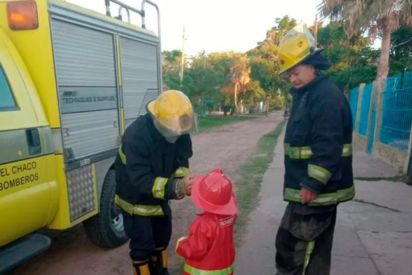 Este lunes los bomberos fueron hasta el barrio 2 de Abril en la ciudad de Barranqueras a celebrar el cumpleaños numero 3 de un niño llamado Nehemías.