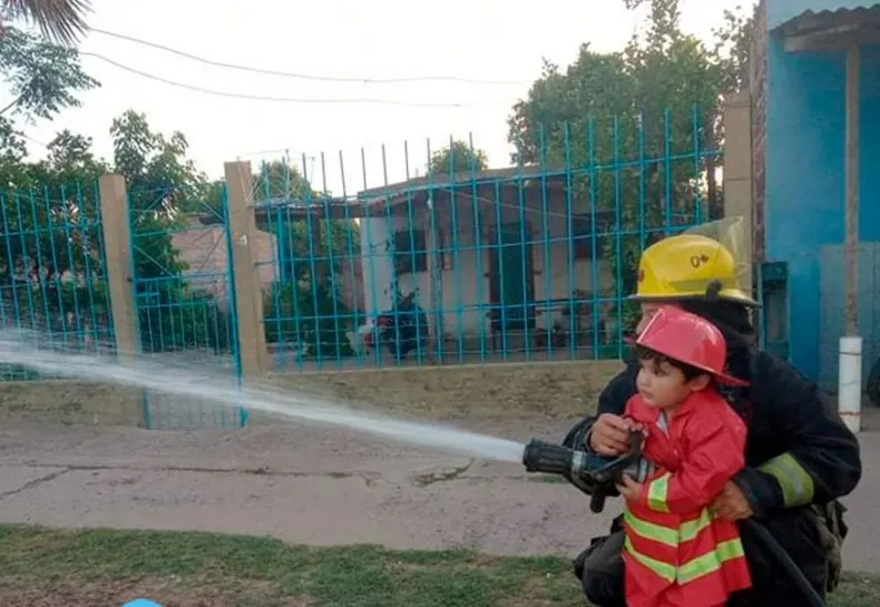 El niño quería festejar su día con sus "héroes y amigos" del cuartel de bomberos. Los mismos llegaron al lugar y pusieron en marcha el autobomba.