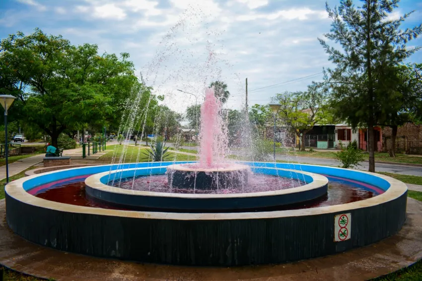 Como ya es habitual, y por decisión del intendente Bruno Cipolini, el agua de las fuentes permanecerá de color rosa, en conmemoración a la lucha contra el Cáncer de Mama.