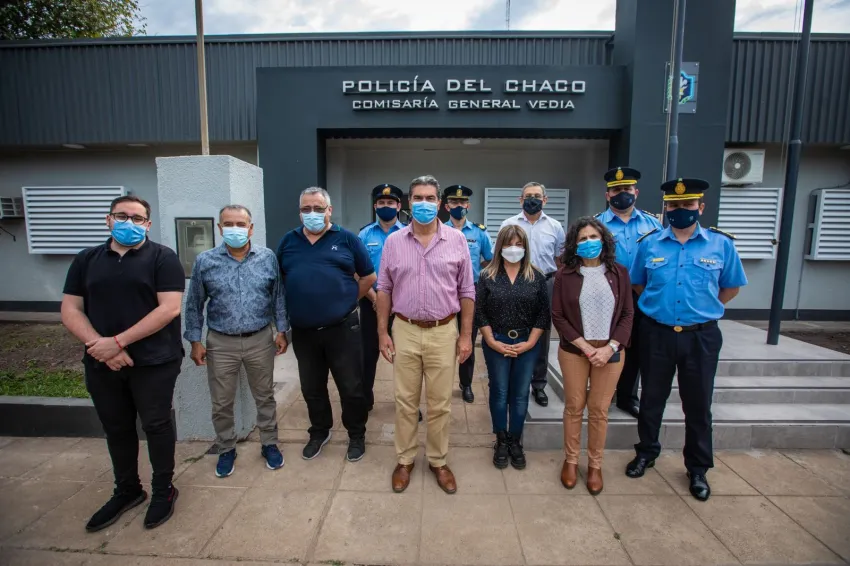 En General Vedia, el gobernador Jorge Capitanich inauguró esta mañana las obras de refacción de la comisaría local que demandaron una inversión de $21.964.153 con financiamiento provincial. "Se trata de un plan de intervención edilicia en todas las comisarías de la provincia para garantizar una mejor prestación de servicios", subrayó el mandatario junto al intendente Jorge Rodríguez, la ministra de Seguridad y Justicia, Gloria Zalazar, y su par de Planificación, Economía e Infraestructura, Santiago Pérez Pons.