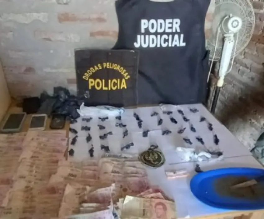 En la vivienda encontraron 39 envoltorios con marihuana, 1 envoltorio con cocaína, recortes de polietileno, un plato con restos de estupefacientes, papelillos, la suma de $14.240 pesos, cuatro celulares, y una balanza electrónica, todos estos elementos fueron secuestrados por guardar relación con la venta de estupefacientes. Además, se realizó el secuestro impostergable de un rifle aire comprimido.