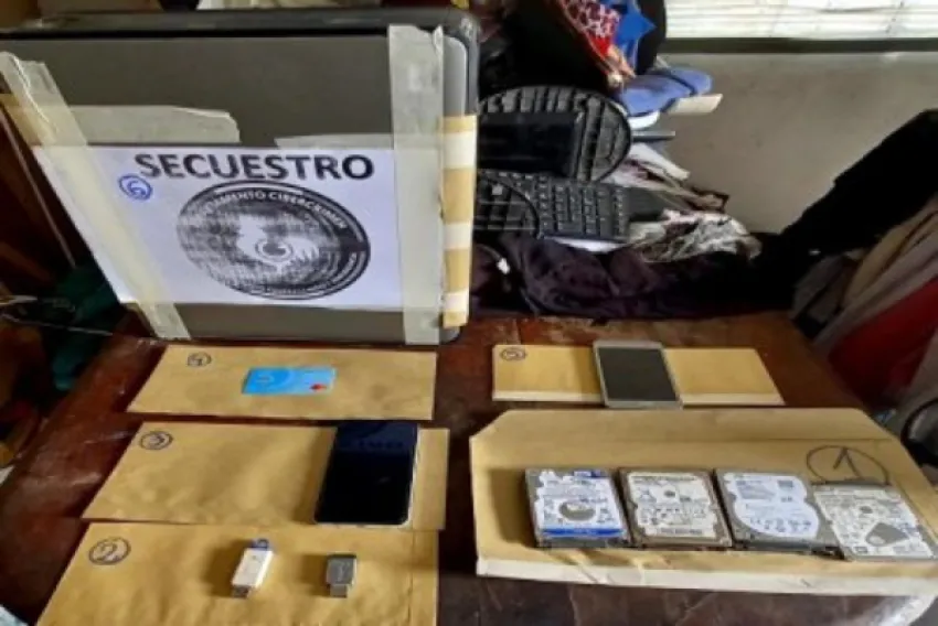 Esta mañana, los efectivos realizaron un allanamiento en un domicilio por el pasaje Julio Tort al 2800 aproximadamente, donde incautaron dos teléfonos celulares, dos pendrives, una tarjeta de mercado pago y seis discos duros que serían de interés en la causa. Una mujer de 30 y un hombre de 33 años quedaron aprehendidos.