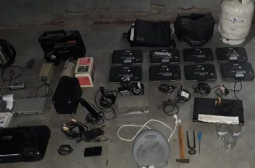 Asimismo, pudieron establecer que parte de los elementos sustraídos estarían ocultos en un baldío ubicado en el cruce de las calles 51 y 14. Hasta esa dirección arribaron los agentes y demoraron a tres jóvenes, dos de ellos menores de edad, quienes intentaron ocultar una garrafa, 10 notebook con 6 cables cargador, 1 DVD, 3 tazas de vidrio, 1 destornillador, 1 tenaza, 1 martillo, 1 caloventor, 4 micrófonos con cable, 1 parlante, 4 proyectores, 1 consola para micrófono, 1 pava eléctrica, 3 termómetros infrarrojo, 3 consola micrófono inalámbrico, 2 zapatillas enchufes, 2 módulos VHF, 1 reproductor videocasete, 1 teclado, 2 mouse, 1 monitor 19", 1 reflector led, 1 foco, 2 bolsos negros, 1 candado y un juego de llaves.