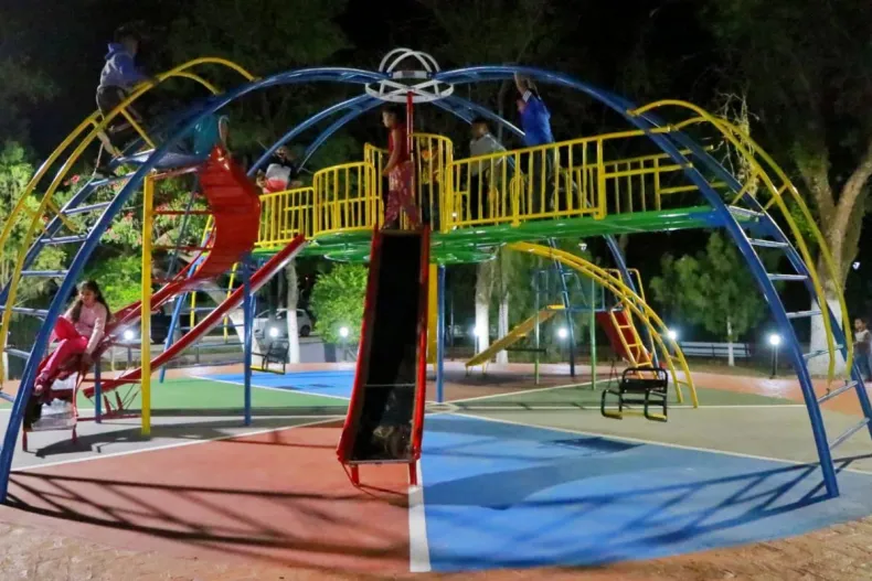 En el Polideportivo Municipal, sobre la cancha de fútbol 11, se inauguró la iluminación LED para la práctica deportiva nocturna. Además, dentro del predio también se habilitaron dos canchas de bocha sintética con cubierta de techo, que demandaron una erogación cercana a los $2.100.000, mismo monto que requirieron los dos juegos acuáticos.