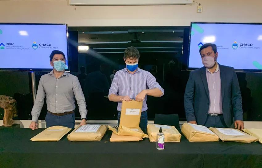 El titular del Instituto de Desarrollo Urbano y Vivienda (IPDUV) Diego Arévalo encabezó junto a los vocales Mirko Nicolich y Mariano Brahim, la apertura de sobres de licitación de 50 viviendas para Villa Berthet. Este grupo habitacional demandará una inversión total de $236.000.831,66 financiada a través del programa Casa Propia - Construir Futuro del Ministerio de Desarrollo Territorial y Hábitat de la Nación.