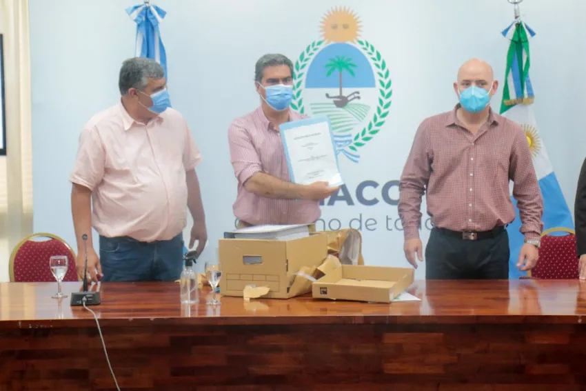 El gobernador Jorge Capitanich y el presidente de la Administración Provincial del Agua (APA), Daniel Pegoraro, junto al intendente José García, abrieron esta mañana los sobres de licitación para la construcción de cloacas en Isla del Cerrito, obra que demanda una inversión de más de 350 millones de pesos y que será financiada a través del programa Profesa del Ente Nacional de Obras Hídricas de Saneamiento (ENOHSA).
