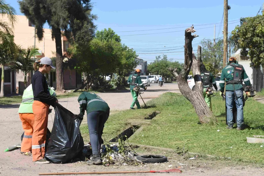 En ese sector de la zona sur de la ciudad se trabajó en el mantenimiento y limpieza de desagües junto a la recolección de residuos dispersos en la vía pública y tareas de desmalezado. Al mismo tiempo los trabajadores comunales llevan a cabo un abordaje sobre un espacio público de avenida Rodríguez Peña y calle 21 para la erradicación y reconversión definitiva de un minibasural.