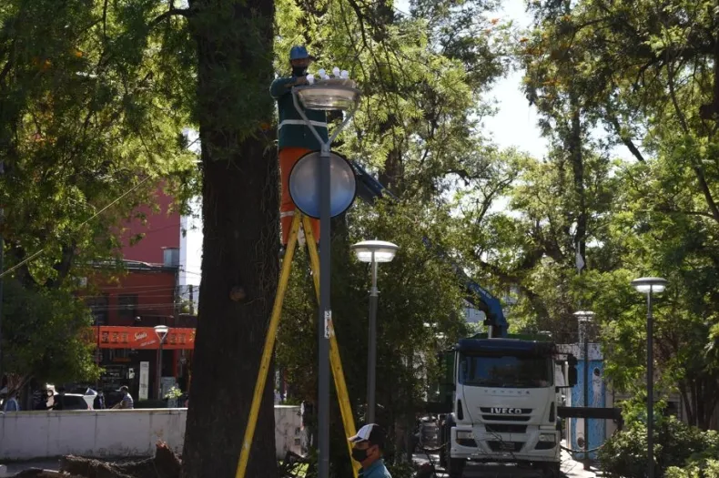 Operarios municipales reemplazaron los artefactos lumínicos por equipos led para proveer "mayor iluminación a ese espacio público al que acuden muchos vecinos y vecinas para esparcimiento y/o recreación mediante actividades físicas", expresaron desde el municipio.