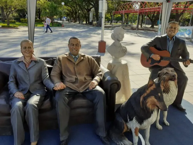 Un Alberto Fernández sonriente, relajado, tocando la guitarra, y secundado por sus perros: Dylan y Prócer. El Presidente y sus mascotas quedaron inmortalizados en estatuas que fueron exhibidas en distintas plazas de Formosa. Así la provincia gobernada por Gildo Insfrán volvió a ser noticia, pero esta vez por una muestra itinerante de esculturas peronistas que incluyó al mandatario y sus perros.