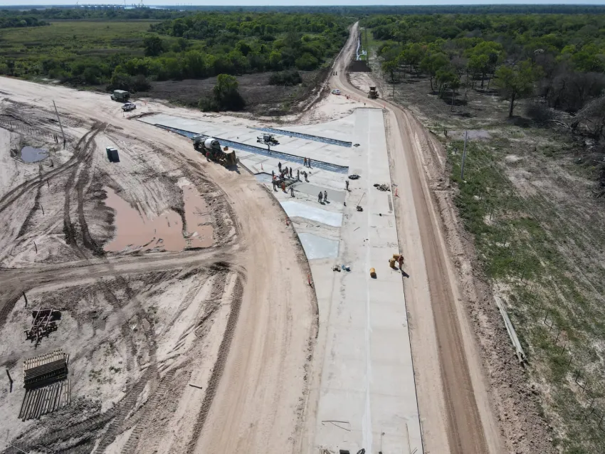 La Dirección de Vialidad Provincial trabaja intensamente en la obra de acceso al Puerto de Las Palmas, ubicado sobre el Río Paraguay. Este importante proyecto ejecutado por la empresa JCR S.A. incluye un tramo de 14,17 kilómetros correspondientes al acceso desde el empalme con la Ruta Prov. Nº 56, en La Leonesa, hasta el puerto.
