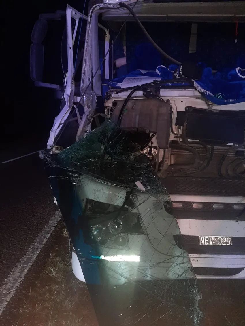 De manera urgente, se hicieron presentes en el lugar alrededor de las 21:30, donde pudieron constatar la fuerza del choque. Allí, observaron a dos camiones, uno marca Mercedes Benz 1620 conducido por un hombre de 35 años y un camión marca Iveco conducido por un hombre de 36 años oriundo de la Provincia de Santa Fe.