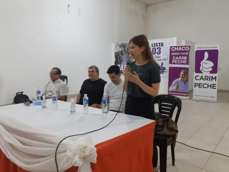 Carim Peche se dirigió a los presentes agradeciendo a cada uno de ellos que desde el año 1999 los acompaña con este proyecto. Se refirió a los "triunfos aplastantes que hemos tenido en Sáenz Peña y esto se debe a que juntos entendimos que es más fácil cuando hay un objetivo común y fue entender que la posibilidad que nos daba la ciudadanía de Sáenz Peña la teníamos que honrar con responsabilidad, con compromiso, y esa transformación que algunos a veces no la remocen y les guste o no, desde el 99 a la fecha se transformó Sáenz Peña y se sigue transformando y vamos por más".