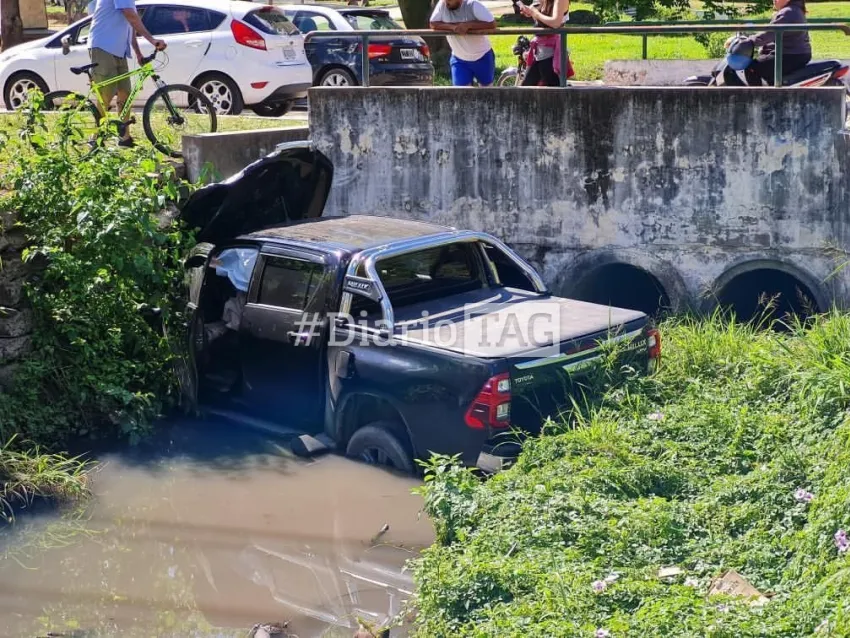 Este domingo, en horas de la mañana, una camioneta y un automóvil chocaron sobre la Avenida Vélez Sarfield y calle Don Bosco. A causa del impacto la camioneta terminó en el desagüe de la Laguna Arguello.