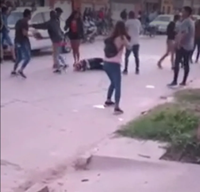 Durante la pelea, un proyectil impactó en la cabeza de la joven, provocando de inmediato -como se puede apreciar en el video- el desvanecimiento de la víctima y la pérdida de conciencia. Acto seguido fue socorrida por su pareja quién llamo al servicio de emergencias.