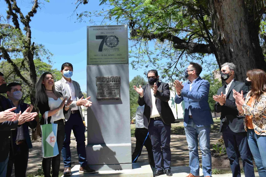 En el marco del 70º aniversario de la Federación Económica del Chaco, el Intendente valoró el aporte privado para fomentar el desarrollo de Resistencia y la provincia. Lo hizo durante el descubrimiento de una nueva placa en el monolito ubicado en la Plaza 25 de Mayo.