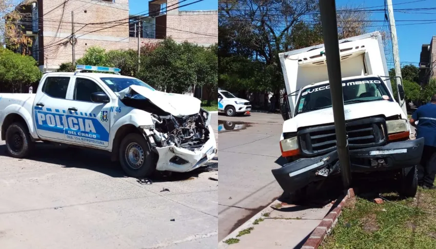 Una camioneta Nissan Frontier de la Policía y un camión Ford F-400 colisionaron fuertemente ayer a la siesta en la intersección de las calles Echeverría y Roldan de Resistencia.