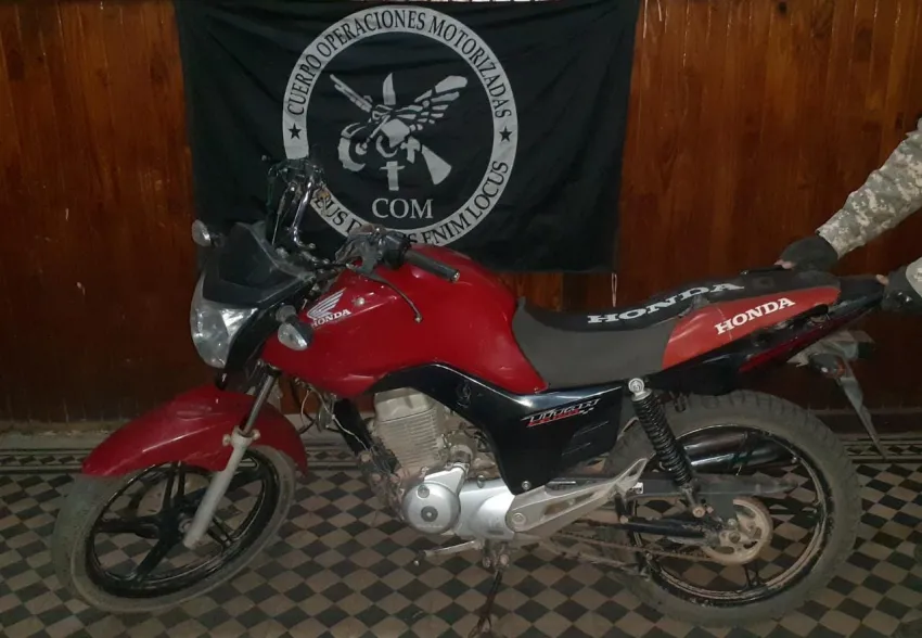 Acto seguido se procedió al secuestro de una motocicleta marca Honda, modelo TITAN CG150, tipo 150cc, sin dominio, con llavero de encendido violentado y la numeración de Motor y Cuadro adulterados (limados).