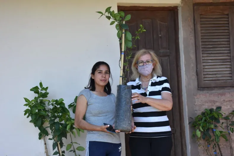 Vecinos que se acercaron al CIC Madre María de la Esperanza, y otros a quienes se visitó durante la recorrida por el barrio, pudieron acceder de manera gratuita a una especie frutal para plantar en su domicilio.