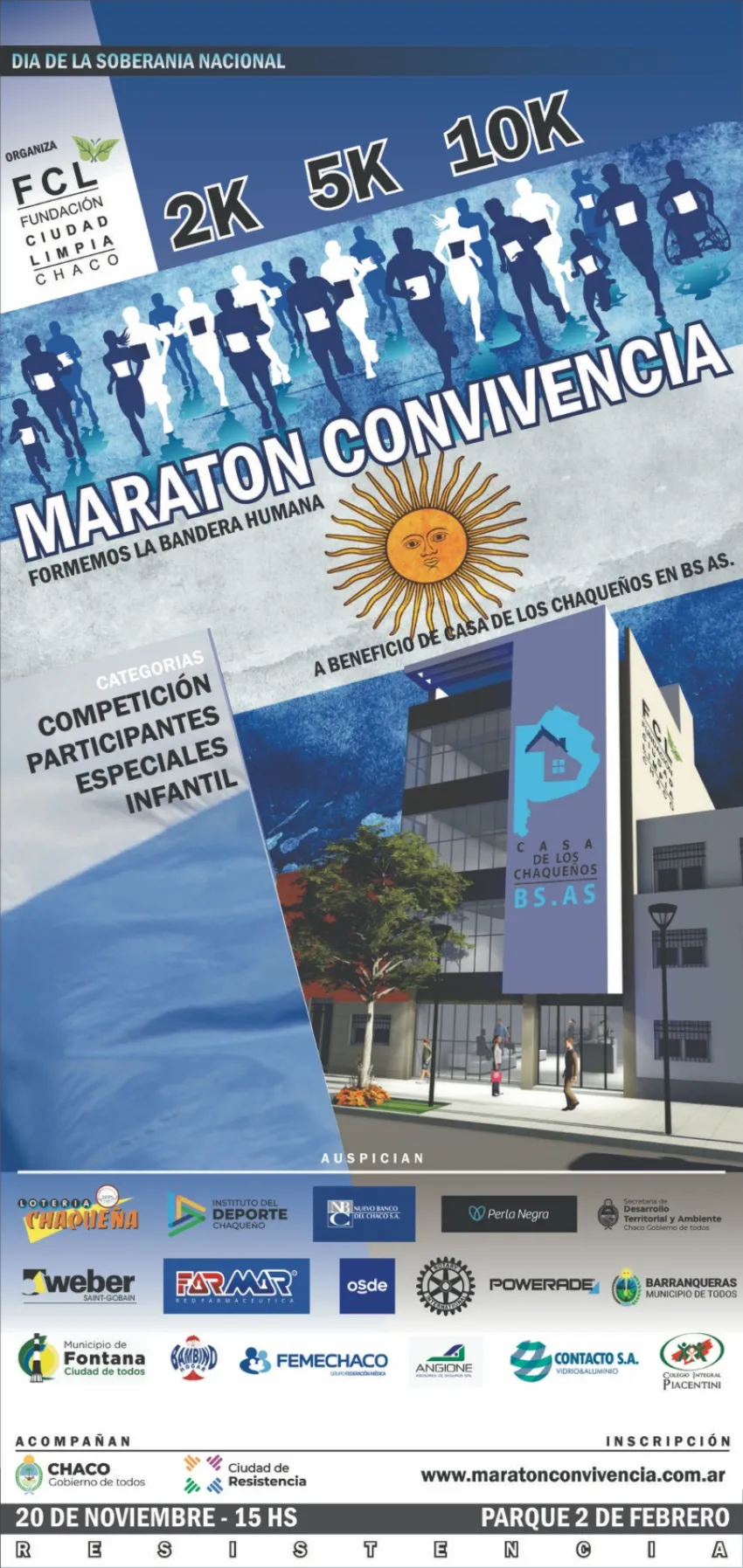 Celebrando el Día de la Soberanía Nacional el próximo 20 de noviembre a las 15 horas, se larga la gran "Maratón Convivencia" desde el Parque 2 de Febrero de nuestra ciudad, previendo recorridos que van desde los 2 kilómetros, 5 km y hasta 10 km con categorías Competitiva, Participante e Infantiles.