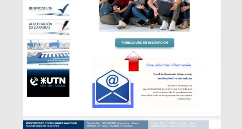 Desde el pasado 25 de octubre hasta el 15 de diciembre, inclusive, se encuentra abierta la inscripción al segundo turno del Seminario Universitario para ingresar en 2022 a las carreras de grado que se dictan en la Facultad Regional Resistencia de UTN, así como también a tres tecnicaturas universitarias y a cuatro ciclos de complementación curricular.