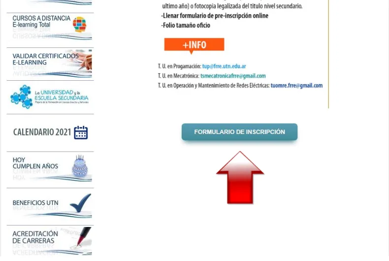 Para las carreras: Ingeniería Electromecánica, Ingeniería en Sistemas de Información, Ingeniería Química y Licenciatura en Administración Rural deberán realizar la inscripción online.