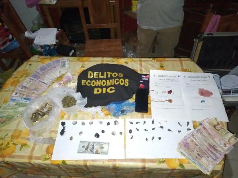 Los uniformados irrumpieron en el lugar, tras realizarse una minuciosa requisa en la vivienda se procedió al formal secuestro de los estupefacientes (19 plantines de marihuana), dinero en efectivo (100 dólares y $ 54.285), teléfonos celulares y en carácter impostergable televisores, motocicleta y consola de video juego con intervención de la Fiscalía penal en turno.