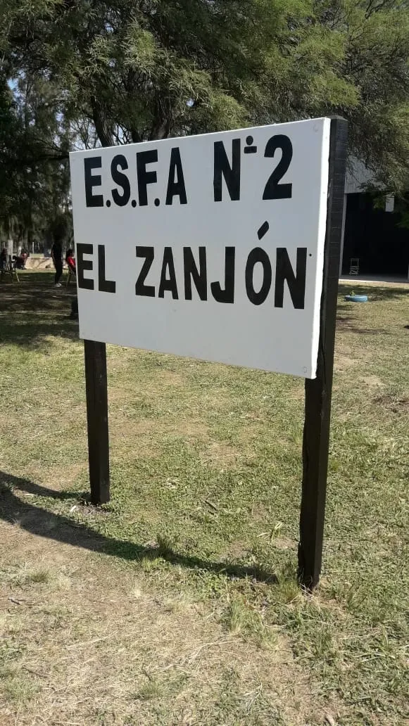 El cartel con la denominación institucional fue realizado por estudiantes en uno de los espacios curriculares, proyecto a cargo de la profesora Stella Maris Gonzáles y estudiantes de 5º año.