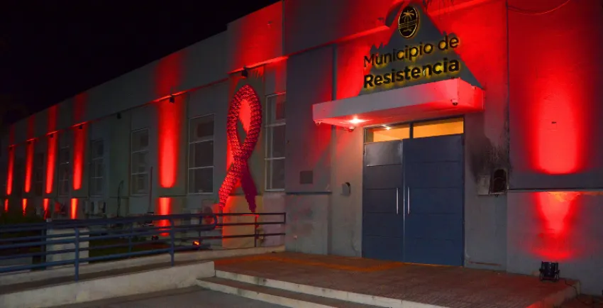 El Municipio de Resistencia se iluminó de rojo para conmemorar la lucha mundial contra el ACV