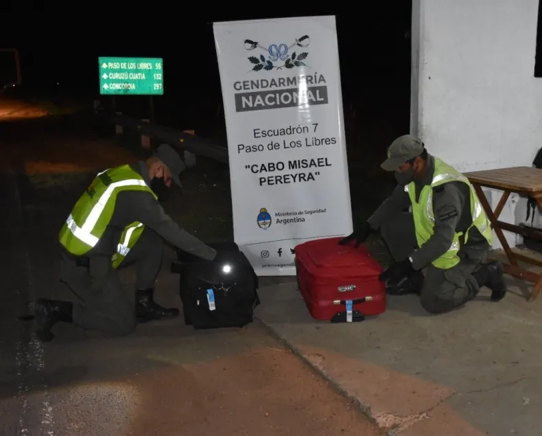 Al registrar la bodega del vehículo, efectuado a la altura del kilómetro 536 de la Ruta Nacional N° 14, localidad de Tapebicuá, los gendarmes detectaron un bolso de mano y una valija que contenían un bulto grande cada uno, de características similares a los utilizados para el transporte de estupefacientes.