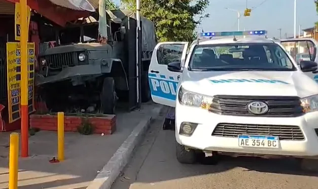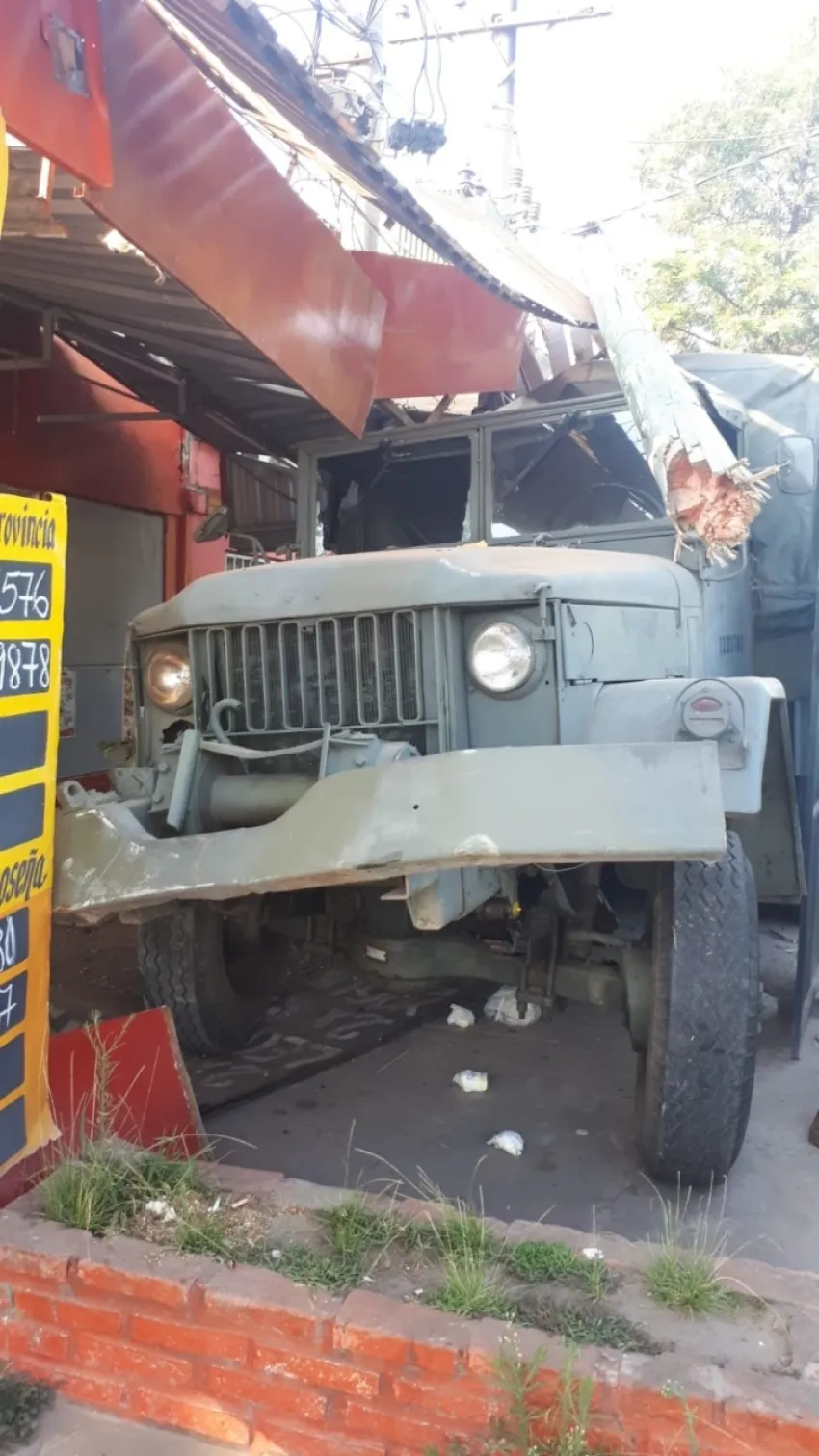 Un camión del Ejército perdió el control y terminó incrustándose en una agencia de quiniela