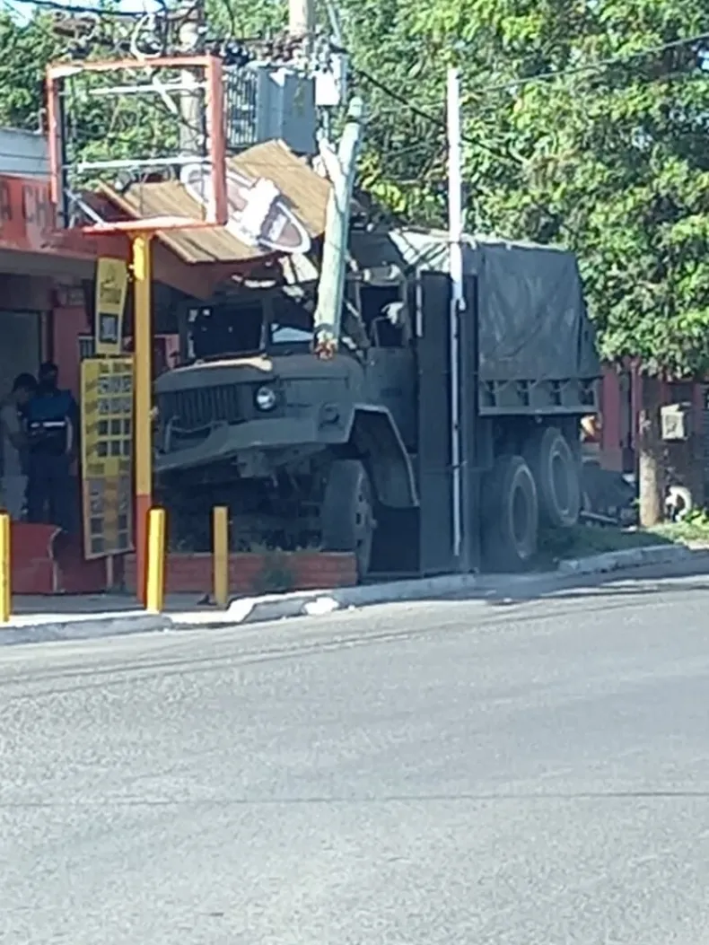 En horas temprana de este martes, se dio un accidente de tránsito en la ciudad de Barranqueras, más precisamente sobre avenida San Martín y Asunción, donde el protagonista fue un camión perteneciente del Ejército Argentino que se terminó incrustando contra una agencia de quiniela.