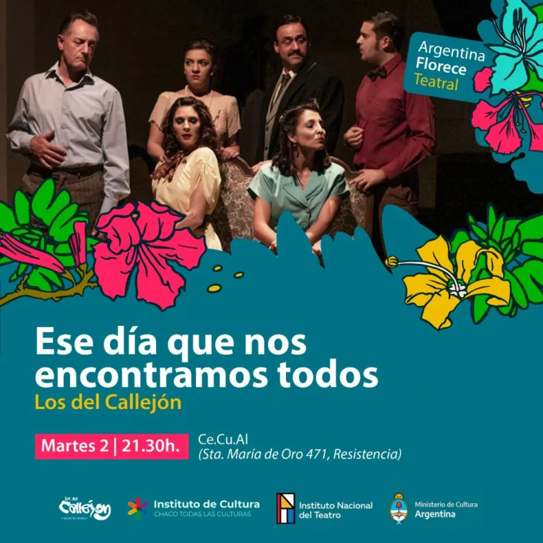 El martes 2 de noviembre, a las 21.30, se presenta "Ese día en que nos encontramos todos", una obra escrita y dirigida por Víctor Cardozo, esta función será destinada únicamente para estudiantes, con entradas gratuitas. La producción fue pensada especialmente para el teatrín del Centro Cultural Alternativo (CeCuAl), ubicado en Santa María de Oro al 471 en Resistencia, lugar de ensayo del elenco, "Los del Callejón".