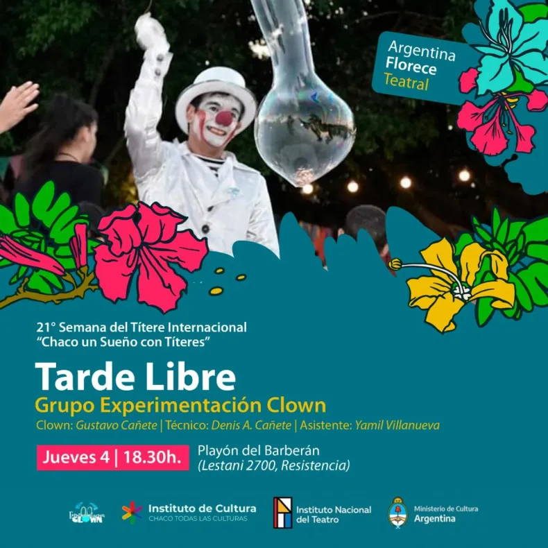 Simultáneamente se estarán presentando, a las 18.30 en el playón del barrio Barberán (Lestani 2700, Resistencia) Tarde Libre del grupo "Experimentación Clown". En ése mismo horario, llega Juancito y el virus, otra propuesta infantil de la "Fundación Acuífero Guaraní", la función será en la plazoleta Luis Landriscina, ubicada en Fortín Rivadavia al 2500, Resistencia.